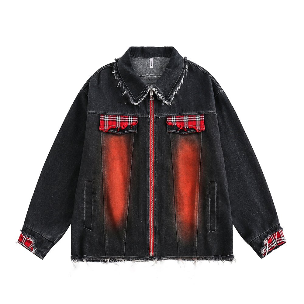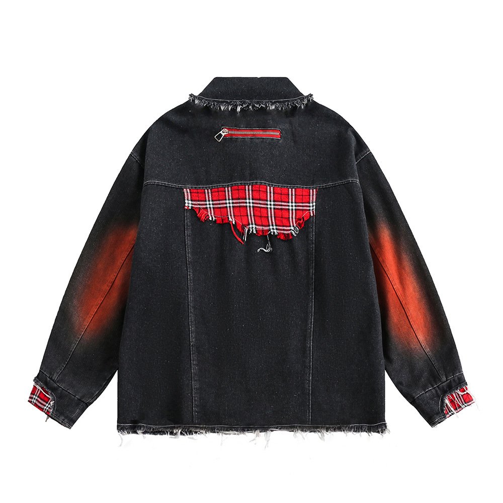 Color Matching Cat Raw-cut Edges Washed And Worn Loose Lapels Coat Fashion