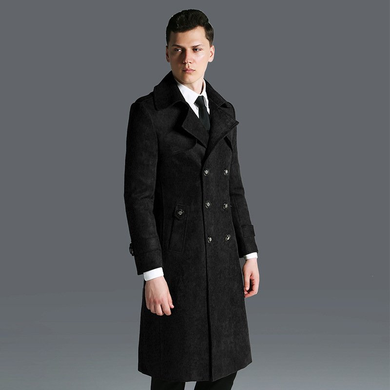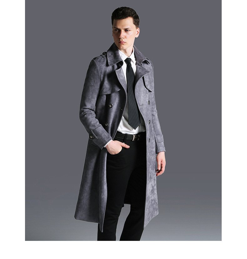 Suede Men’s Solid Color Trench Coat
